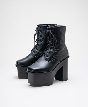 LACE UP MIDDLE BOOTS / COLOR : BLK