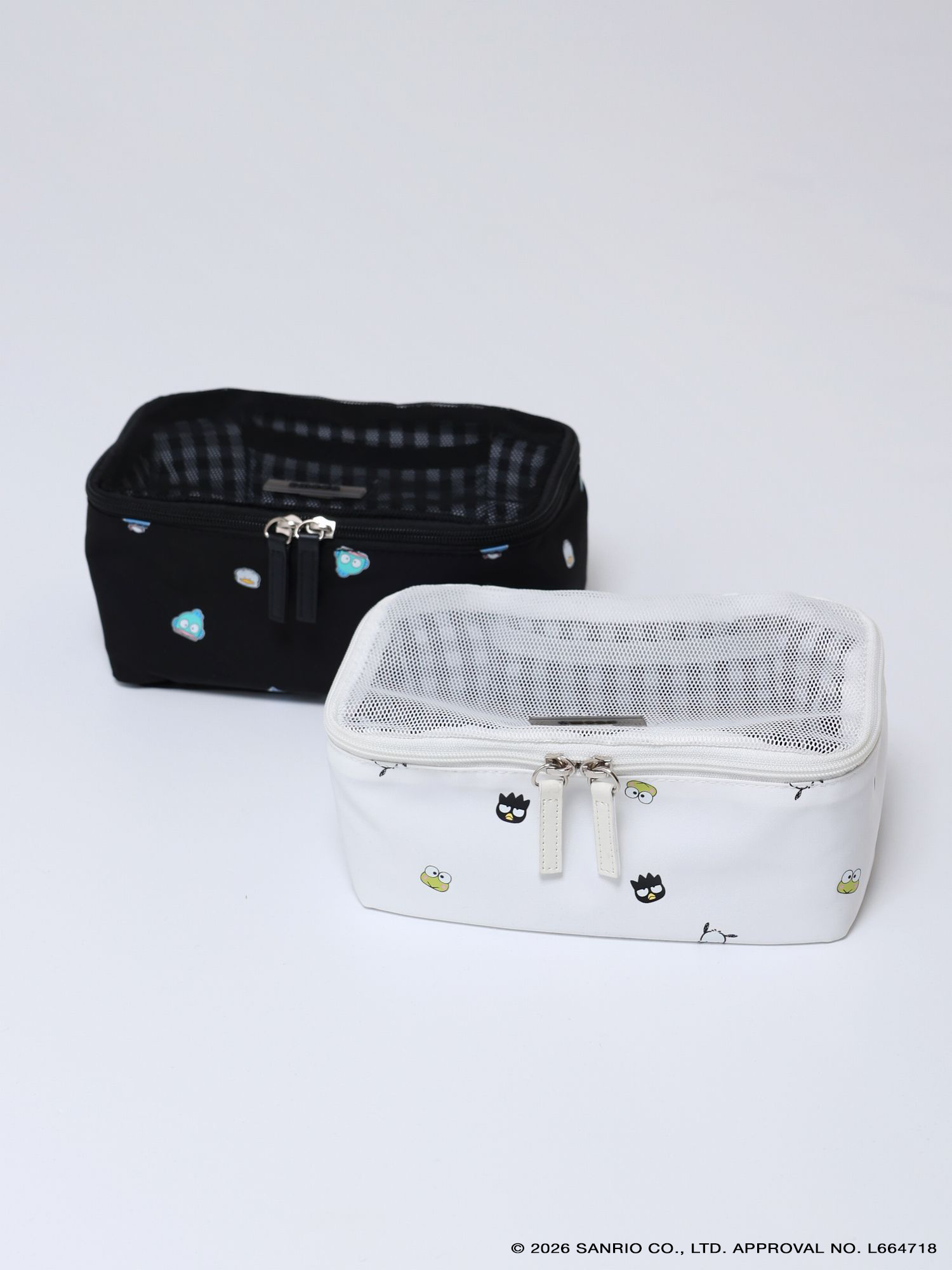 今回のコラボレーションでは、キャラクターをちりばめた総柄デザインのアイテムを3型共通で展開します。ホワイトカラーは、ポチャッコ、けろけろけろっぴ、バッドばつ丸、ブラックカラーはタキシードサム、ハンギョドン、あひるのペックルが登場。春夏にぴったりなギンガムチェック柄と掛け合わせ、EMODAらしいモノクロのカラーリングにまとめました。ラインアップはルームウェア、ポーチ、バッグの3型展開。